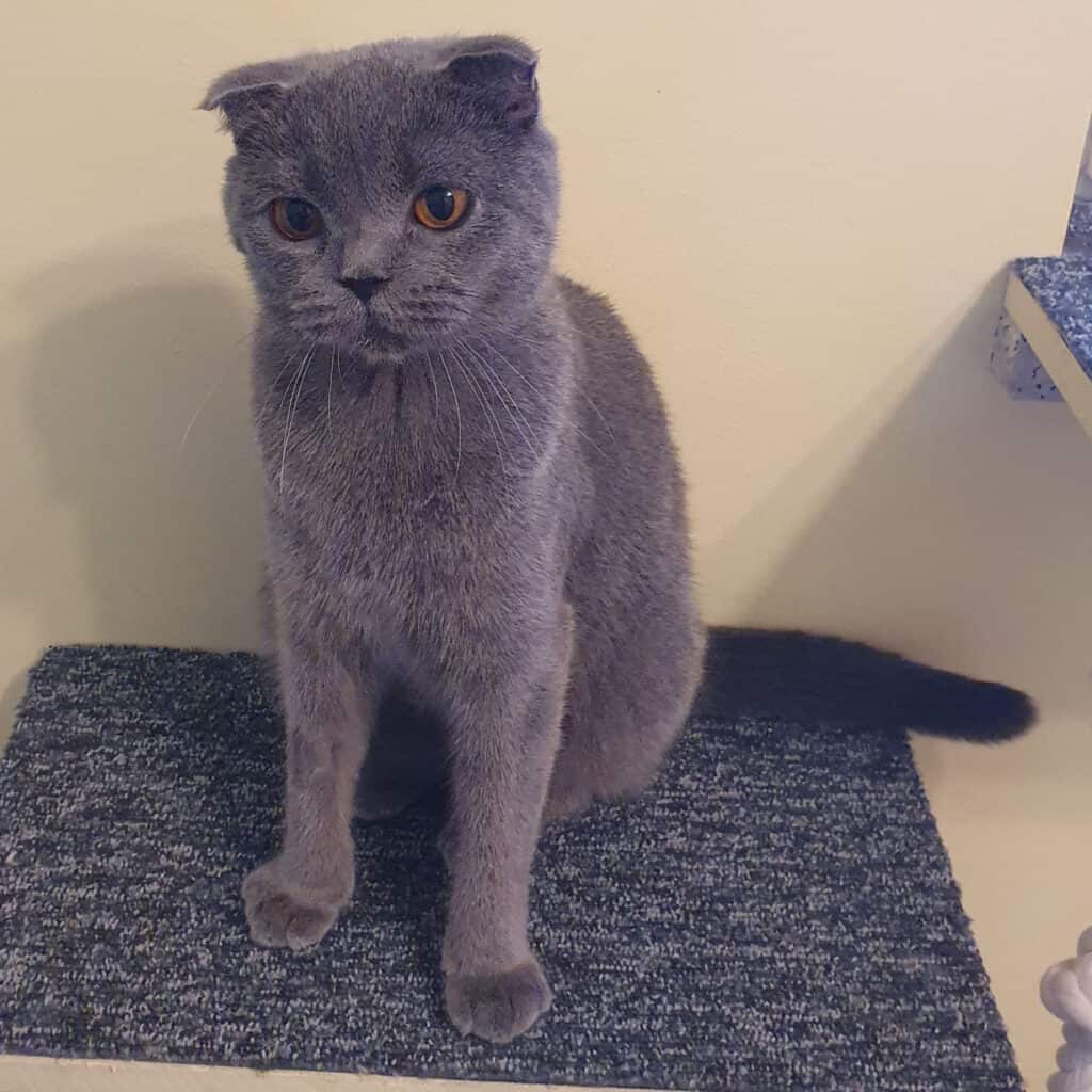 Sushi gehört zur Rasse Scottish Fold.